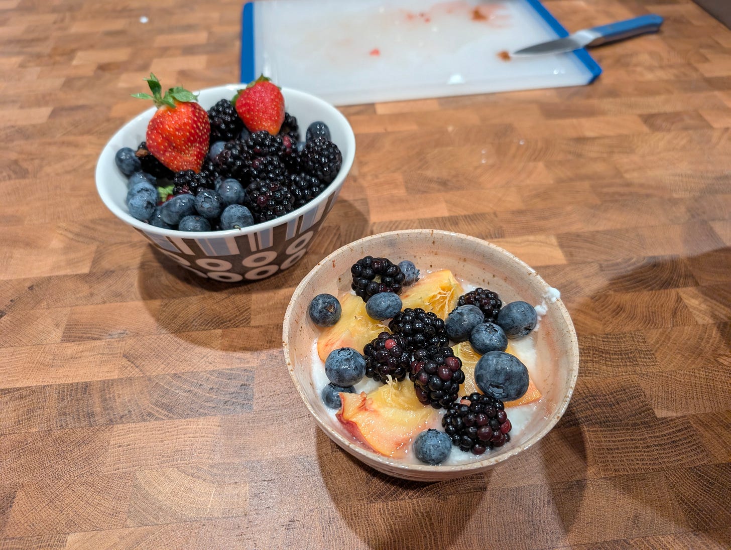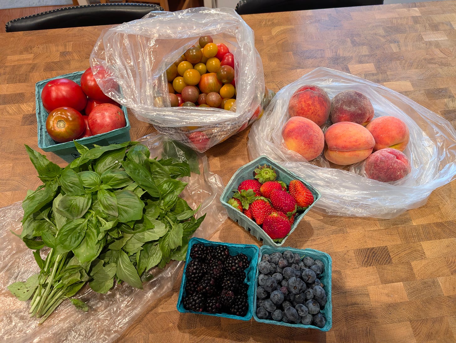 Stonefruits are also very much in season right now: peaches are so, so lovely (yellow over white all day) and I got some awesome apricots the other week. Berries are usually on their way out at this time of year, but last week there were still plenty of strawberries, blackberries, and blueberries. I’m guessing the weird weather this year extended the growing season a bit.