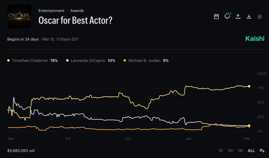 Last month I talked to my friend Jason (last name withheld for privacy reasons), a management consultant who has never lost money in his seven years of betting on the Academy Awards. We spoke about his investment-based approach, early picks, and how prediction markets like Kalshi and Polymarkt differ from traditional sportsbooks. It got a lot of traction thanks to Official Substack excerpting it in their weekly roundup, and it’s still worth a read if you haven’t gotten to it: