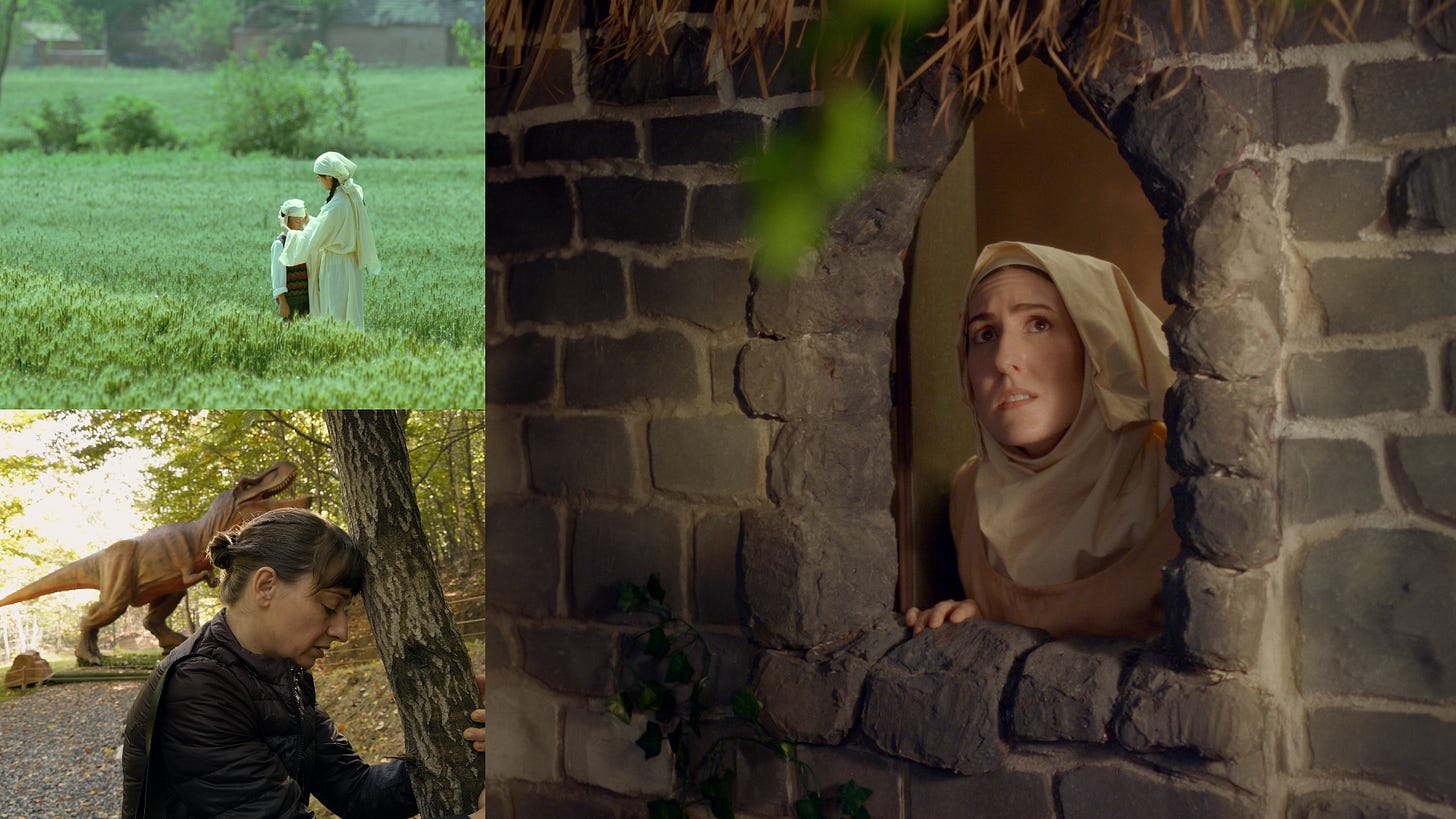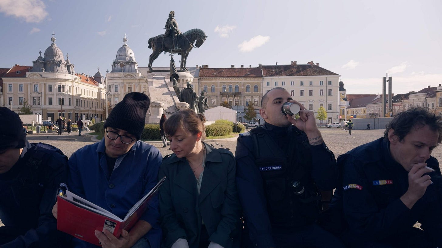 In a departure from Jude’s usual Bucharest setting, Kontinental ‘25 takes place in Cluj, the commercial center of Transylvania. (This being a natural result of shooting Dracula at the same time.) The most memorable location is Dino Land, an uncanny animatronic Jurassic Park that offers a refuge from the bustling city streets. Perhaps the funniest image in the entire film is of Orsolya kneeling and reciting the Lord’s Prayer while a pterodactyl crows and gesticulates in the background. The Transylvania setting also allows Jude to touch on the active prejudices between Central European ethnicities: Orsolya is a member of the country’s Hungarian minority, and jokes about the vices of Romanians and Hungarians alike are freely volleyed.