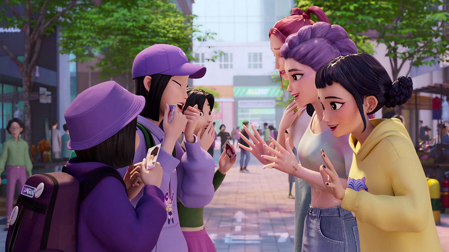 (If you are somehow unfamiliar with KPop Demon Hunters, it’s about a trio of Korean popstars who are also demon hunters. Their group, HUNTR/X, faces off against rival boy band the Saja Boys, who are demons in disguise. The songs are insanely catchy.)