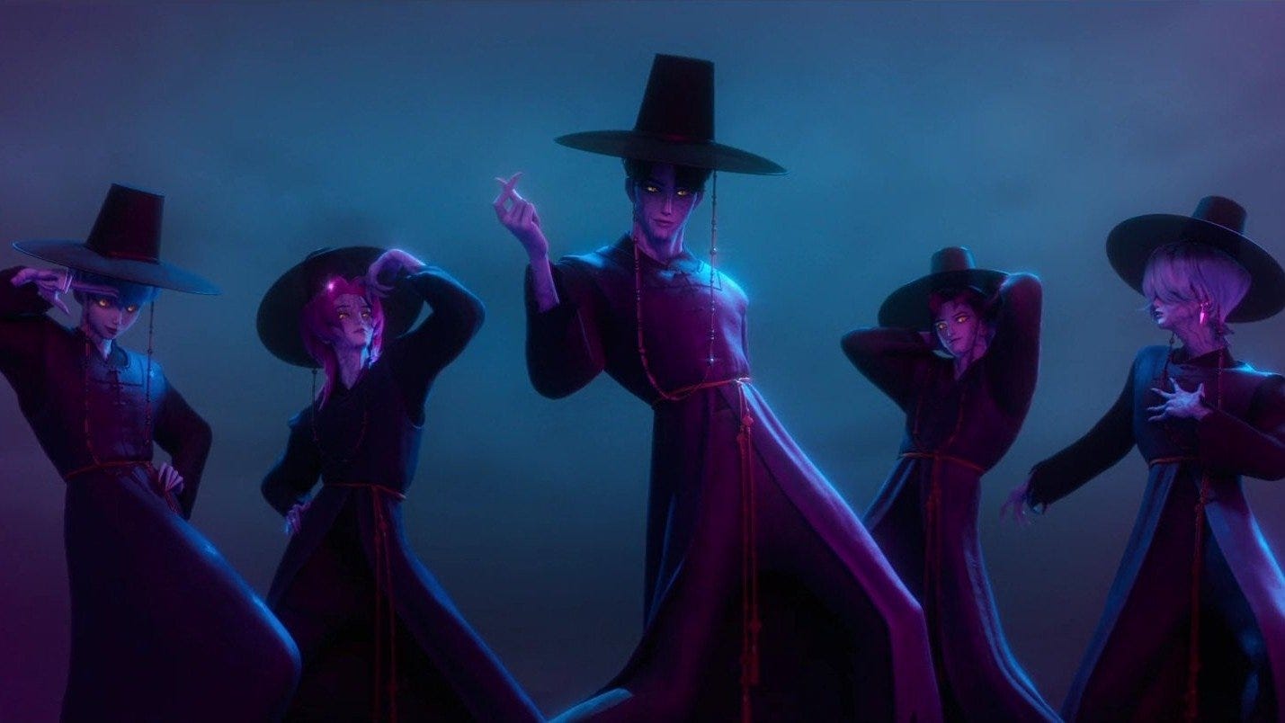 The movie is not literally about Asian Americans. It’s set in Korea, with a couple sojourns to the demon realm2. But the film undeniably connects to a personal Asian American Experience™ (as represented in mainstream media). Maggie Kang, who conceived of this project, grew up in Toronto, but for the purposes of Asian American media, Canada may as well be the 51st state.