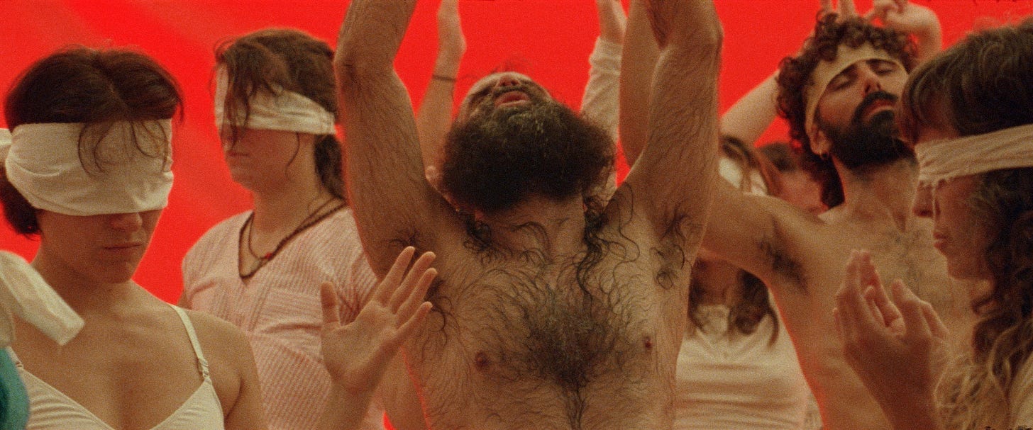 A different kind of exorcism occurs midway through Irati Gorostidi Agirretxe’s film, though to opposing ends. While the “deliverance healer” in Leviticus aims to sever his victims’ connection to their bodies, the men and women in Aro Berria seek a positive form of liberation. Set in 1978, the film tracks a group of disenchanted leftist metalworkers in the Basque Country who, dissatisfied with the latest union contract, join a hippie commune. (The title is Basque for “New Age.”) Blindfolded in a windowless, orange-painted room, the converts engage in esoteric dances, sustained floor writhing, and what appears to be a version of primal scream therapy. This sequence lasts ten excruciating minutes, and there’s more where that came from.