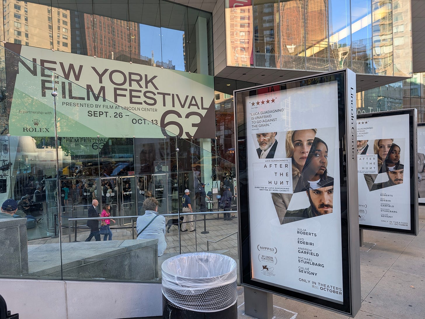 With the day’s two movies over and done, I went to the Performing Arts library to work, and afterwards checked out the scene outside Alice Tully Hall. Everyone was gearing up for the gala premiere of After the Hunt. Autograph hounds were set up outside the stage door as attendees made their way into the lobby. I finally felt a little bit of that festival atmosphere that I had been missing.