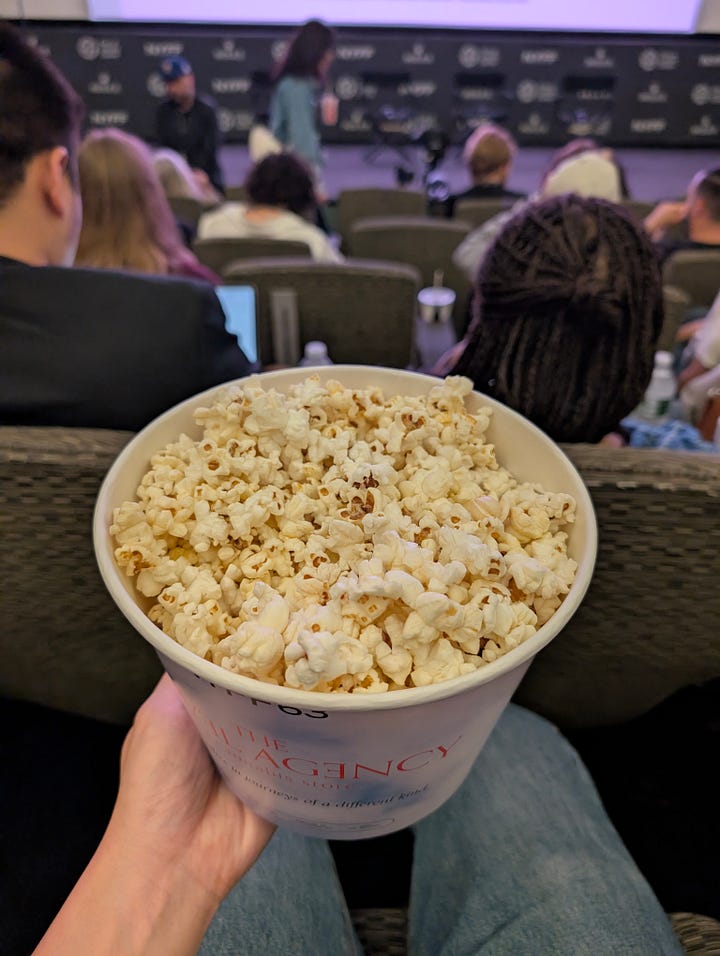 There’s just enough time before the next movie to grab a chocolate almond croissant from Breads Bakery. When I get back to the Walter Reade, I finally cave in to the intoxicating smell of their popcorn. Decided to get a large because screw it, it’s Opening Night and I wanted to treat myself.