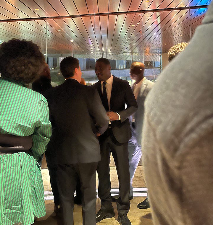 Gathered around a white-tableclothed high-top with K— and his friends, I had the perfect vantage point for watching guests file in. It was the typical crowd for these events: producers, distributors, sponsors, critics, influencers. A camera flash heralded the VIP arrivals. In came Kathryn Bigelow, the film’s director, followed by her A-list cast: Tracy Letts (with his partner Carrie Coon), Anthony Ramos, Renée Elise Goldsberry. As a waiter appeared at my elbow asking if I’d like a refill (the answer was yes), I locked eyes with Idris Elba, who was chatting with a Netflix exec. It’s true: he really is that beautiful in person.