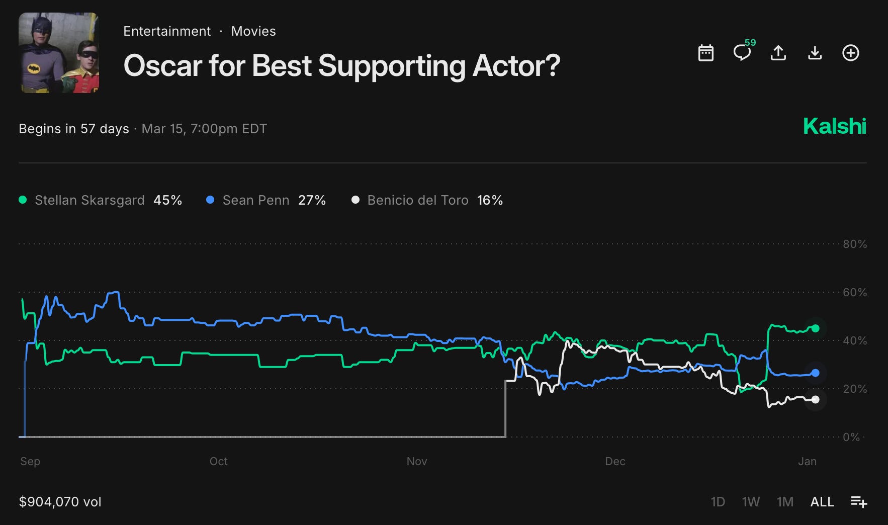 It does, but I haven’t fully figured it out since I’ve only started betting on Kalshi a year ago. With a bookie, bets were due a month before the ceremony. That was interesting because the heavy hitting guilds like DGA and PGA hadn’t announced their winners. There was still a lot of uncertainty.